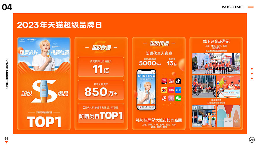 歷經(jīng)超35年的科研沉淀,MISTINE蜜絲婷在防曬、護(hù)膚、底妝、彩妝多個(gè)品類的產(chǎn)品開發(fā)中,堅(jiān)持圍繞對“光”的研究,在光與防曬護(hù)膚、光與色彩妝容的產(chǎn)品應(yīng)用層面,研究光、理解光、樂享光,持續(xù)不斷地提供產(chǎn)品解決方案,滿足消費(fèi)者對防曬美白、潮流妝容、護(hù)膚健康的需求。防曬系列產(chǎn)品作為MISTINE蜜絲婷的知名品類,以物化生一體的全鏈路防曬技術(shù),憑借高倍防曬、清爽膚感的高功效和高質(zhì)價(jià)比勝出,長期位于天貓進(jìn)口防曬熱賣榜、回購榜、好評榜TOP1,天貓每銷售8支防曬霜,就有1支來自MISTINE蜜絲婷。