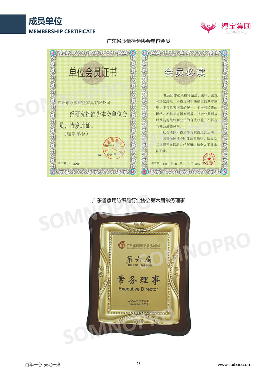自1971年獨(dú)立研發(fā)生產(chǎn)出專屬國(guó)人的彈簧床墊,穗寶關(guān)于優(yōu)質(zhì)深度睡眠的研究已有半個(gè)世紀(jì)的歷史。穗寶一直專注床墊,專注中國(guó)消費(fèi)者的睡眠研究,針對(duì)中國(guó)人特點(diǎn)進(jìn)行優(yōu)化創(chuàng)新,不斷提升國(guó)人的睡眠體驗(yàn),只為成就每個(gè)晚上8小時(shí)的優(yōu)質(zhì)深度睡眠。憑借不斷革新的研發(fā)科技和深受消費(fèi)者信賴的產(chǎn)品品質(zhì),穗寶集團(tuán)旗下品牌和產(chǎn)品屢獲國(guó)內(nèi)外大獎(jiǎng),連續(xù)20年榮膺中國(guó)500最具價(jià)值品牌,品牌價(jià)值高達(dá)302.89億元。