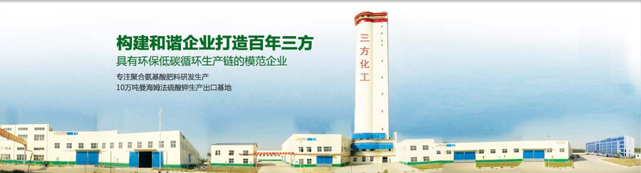 山東三方化工集團(tuán)有限公司是一家以生產(chǎn)化肥為主,集化工、科研、房產(chǎn)開發(fā)、金融商貿(mào)及農(nóng)化服務(wù)于一體的大型集團(tuán)化企業(yè)。公司成立于1975年,現(xiàn)有總資產(chǎn)8億元,職工1200余人,占地面積1000余畝。主要產(chǎn)品有復(fù)合肥、硫酸鉀、鹽酸、精細(xì)化工等產(chǎn)品,年綜合生產(chǎn)能力120萬(wàn)噸,是北方主要的曼海姆法硫酸鉀生產(chǎn)基地,產(chǎn)品遠(yuǎn)銷日本、澳大利亞、埃及、東南亞等海外國(guó)家和地區(qū)。