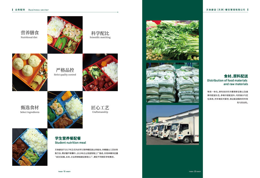 天食康誼(天津)餐飲管理有限公司隸屬于天津食品集團,公司總部坐落于天祥工業(yè)園區(qū),總占地面積15000平方米,主營業(yè)務涵蓋食材采購運輸、學生營養(yǎng)餐配餐、駐地餐廳服務、美食廣場運營。依托母公司強大食品產(chǎn)業(yè)優(yōu)勢,與眾多知名品牌供應商形成長期合作關系,整合產(chǎn)業(yè)鏈上下游資源,打造“從田間到餐桌” 鏈條,成為行業(yè)內極具優(yōu)勢的團膳企業(yè)。目前服務的客戶有總醫(yī)院、民航大學、天地偉業(yè)、農(nóng)行、鞍山道小學等,涵蓋各行業(yè)企事業(yè)單位、大中小學。