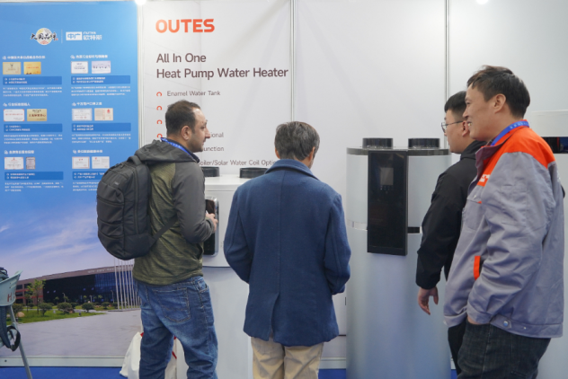 當(dāng)天上午,中廣歐特斯展位前,還吸引了不少來自俄羅斯、美國、德國、意大利、沙特等國家的境內(nèi)外采購商及貿(mào)易大使。采購商們對中廣歐特斯此次展出的熱泵熱水、熱泵空調(diào)等產(chǎn)品格外關(guān)注,同時也對麗水企業(yè)深耕熱泵領(lǐng)域,持續(xù)探索熱泵技術(shù)在家居領(lǐng)域的應(yīng)用等方面表現(xiàn)出了極大興趣。