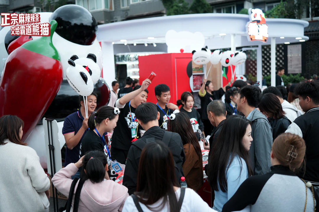 立足成都,衛(wèi)龍首先在“春熙路”和“寬窄巷子”打造了霸道熊貓主題的快閃店,以霸道熊貓辣條獨特可愛的形象吸睛占領人流聚集點。活動現(xiàn)場不僅設置了多個好吃、好玩的互動展區(qū),更是以一眾新奇有趣的周邊吸引了大大小小的消費者,給成都的citywalk撒上一些麻辣鮮香的獨特霸道熊貓味。