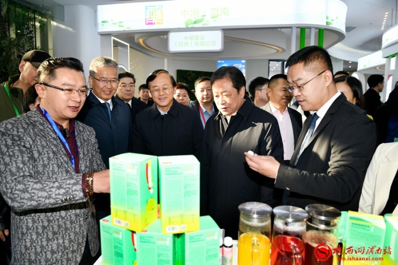 陜西省人大常委會副主任、渭南市委書記樊維斌,渭南市人民政府市長陳曉勇,中國生物發(fā)酵產(chǎn)業(yè)協(xié)會理事長于學(xué)軍等與會領(lǐng)導(dǎo)嘉賓到姿美堂科技集團展區(qū)參觀。