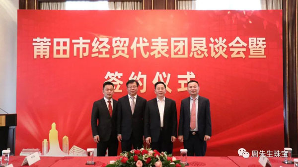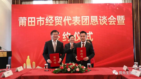 懇談會(huì)期間,莆田經(jīng)貿(mào)代表團(tuán)與眾多莆仙籍企業(yè)家面對(duì)面交流,就共同推進(jìn)項(xiàng)目合作達(dá)成諸多意向,舉行了簽約儀式。香港周先生珠寶金行國際集團(tuán)有限公司作為應(yīng)邀出席的企業(yè)之一,在眾多領(lǐng)導(dǎo)的見證下簽署“香港周先生珠寶金行國際集團(tuán)有限公司供應(yīng)鏈平臺(tái)”項(xiàng)目合作協(xié)議 。
