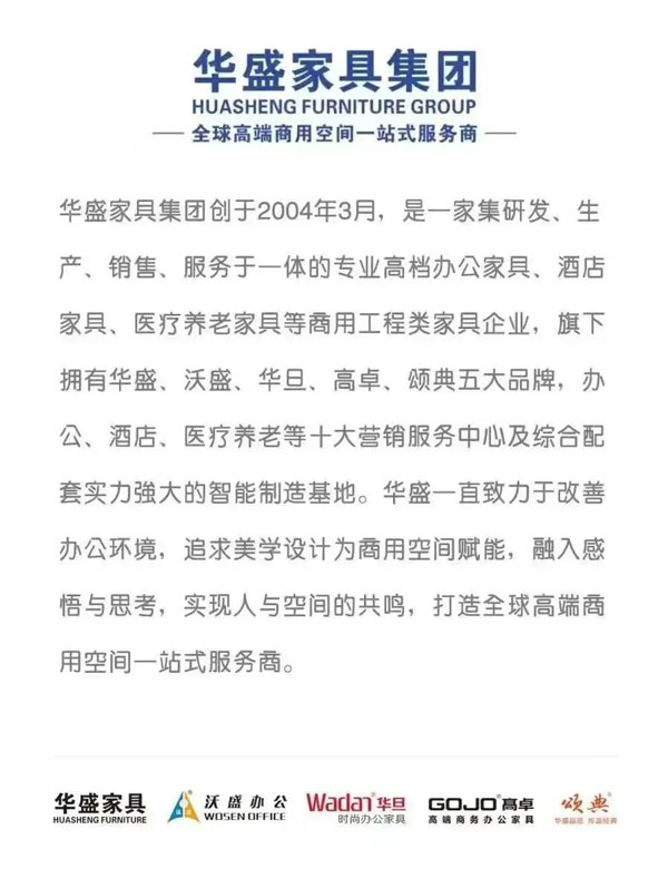 作為在“中國辦公家具重鎮(zhèn)”成長起來的龍頭企業(yè)以及中山市辦公家具行業(yè)協(xié)會會長單位,華盛希望向整個辦公家具產(chǎn)業(yè)和消費市場傳遞華盛穩(wěn)實、積極進取、值得信任和信賴的平臺型、服務(wù)型的企業(yè)形象,從而團結(jié)全市辦公家具行業(yè)力量,借力全國乃至全球資源,助力中山市“中國辦公家具重鎮(zhèn)”建設(shè),助推中國辦公家具產(chǎn)業(yè)高質(zhì)量發(fā)展,擴大區(qū)域知名度和行業(yè)影響力,讓辦公家具企業(yè)得以更好更快的發(fā)展,同時積極籌劃中山打造“中國商用家具之都”!
