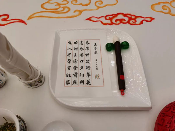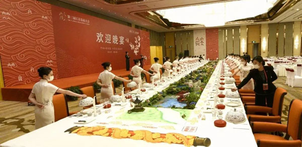 根據(jù)省委提出的“務(wù)實、高效、安全、節(jié)儉”的辦會原則,集團在對上兩屆大會晚宴接待工作全面復(fù)盤的基礎(chǔ)上,將傳統(tǒng)宴會服務(wù)與個性化服務(wù)相結(jié)合,創(chuàng)新細化工作方案,嚴(yán)明工作紀(jì)律要求。根據(jù)“統(tǒng)分結(jié)合”模式,實施“清單化管理、項目化推進、制度化保障”,確保層層有人抓、事事有人管、件件能落實。在用品用具調(diào)配上,本著“能儉不奢、能用不換”的原則,集團對上兩屆大會晚宴的服裝、餐具等用品用具進行了全面梳理和盤點,做到物盡其用、拾遺補缺、簡樸節(jié)??;在食材選擇和菜肴出品上,就地取材、應(yīng)時而獲、因材烹制,以水韻江蘇“江河湖海”相串聯(lián),“傳統(tǒng)菜、時令菜、地標(biāo)菜、創(chuàng)新菜”四菜合一,體現(xiàn)江蘇的地域性、淮揚菜“色香味形”的統(tǒng)一性、綠色有機食材的鄉(xiāng)土性、安全性和人文典故與經(jīng)典傳承的文化性,給嘉賓帶來視覺與味覺的雙重盛宴。尤其值得一提的是,晚宴注重提煉展示江蘇地域文化精髓,堅持創(chuàng)造性轉(zhuǎn)化、創(chuàng)新性發(fā)展,如前菜設(shè)計上巧妙融入了贊美江蘇的經(jīng)典詩詞,紙是糯米紙,墨是墨魚汁,筆是巧克力,筆架是如意糖,創(chuàng)新餐飲文化表達方式,引發(fā)了鄉(xiāng)情共鳴,彰顯了文化自信,嘉賓們紛紛贊嘆金陵“細微之處見功夫”。