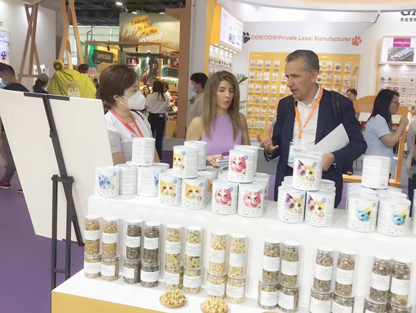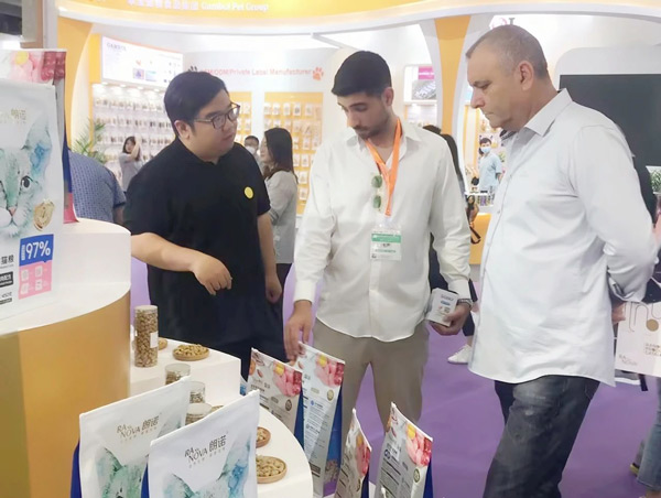 展會現(xiàn)場,來賓絡(luò)繹不絕,吸引了不少來自國內(nèi)外的消費(fèi)者、供應(yīng)商,銷售人員不斷與客戶溝通、交流、探討。來自深圳的小張表示:“自家貓咪最喜歡朗諾棒棒糖,這次特意從深圳趕來參展。這次最驚喜的是凍干雪糕,沒想到小貓咪也有專屬雪糕,一定要買回去讓主子嘗嘗。”從香港趕來的米妮是摯味全價(jià)凍干貓糧的“粉絲”,這次特意來“面基”,找到朗諾展位的那一刻,就像多年好友重逢,倍感親切。