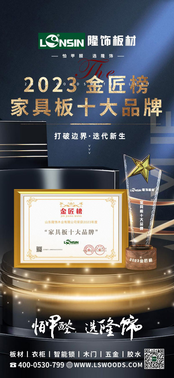 品牌加冕,榮耀所歸!隆飾板材斬獲“2023年度家具板十大品牌”榮譽(yù)獎(jiǎng)項(xiàng)