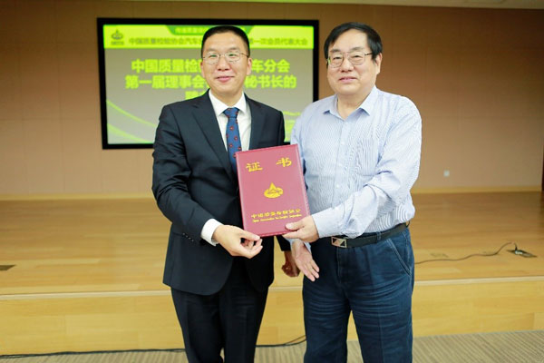 圖為中國質(zhì)量檢驗協(xié)會副會長張明為質(zhì)檢協(xié)會汽車分會
