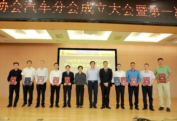 圖為中國質(zhì)量檢驗協(xié)會汽車分會第一屆理事會當選會長、副會長獲頒聘書