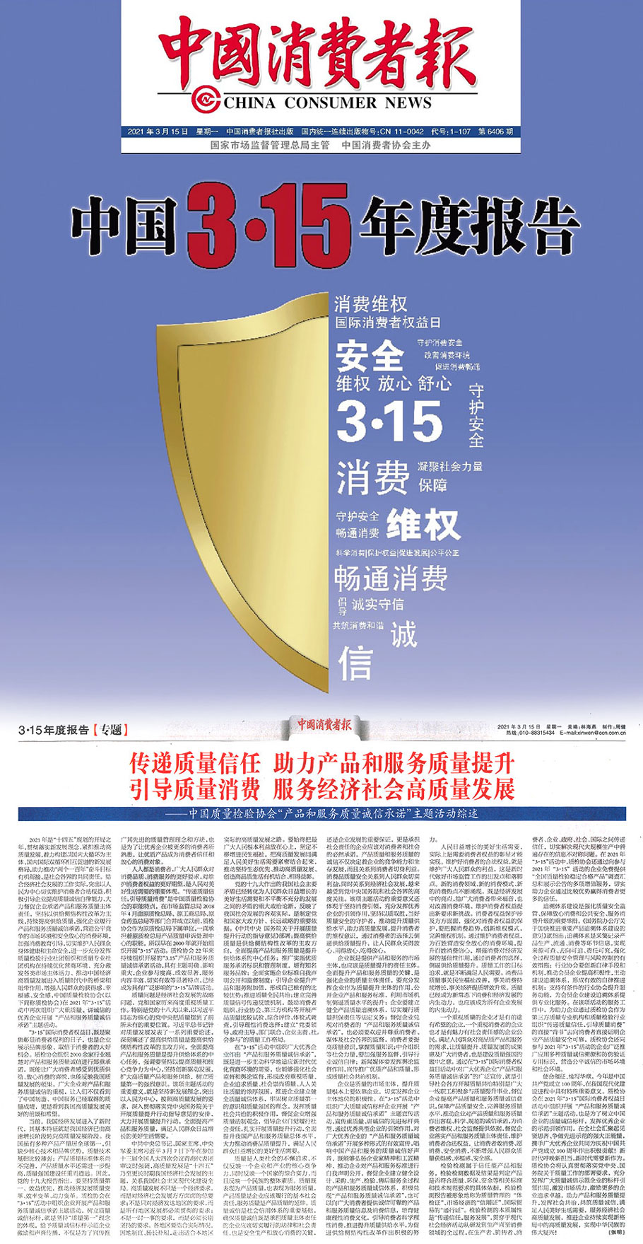 2021年“3.15”國際消費(fèi)者權(quán)益日“產(chǎn)品和服務(wù)質(zhì)量誠信承諾”主題活動相關(guān)新聞報道掠影