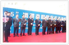 國家質(zhì)檢總局組織的2005年3·15咨詢活動 現(xiàn)場掠影(圖為:國家質(zhì)檢總局李長江局長、 李傳卿書記等領(lǐng)導(dǎo)和北京市政府陸昊副市長 等領(lǐng)導(dǎo)在參加活動開幕式) |