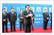 國家質(zhì)檢總局組織的2005年3·15咨詢活動 現(xiàn)場掠影(圖為:國家質(zhì)檢總局蒲長城副局長 在活動開幕式上講話) |