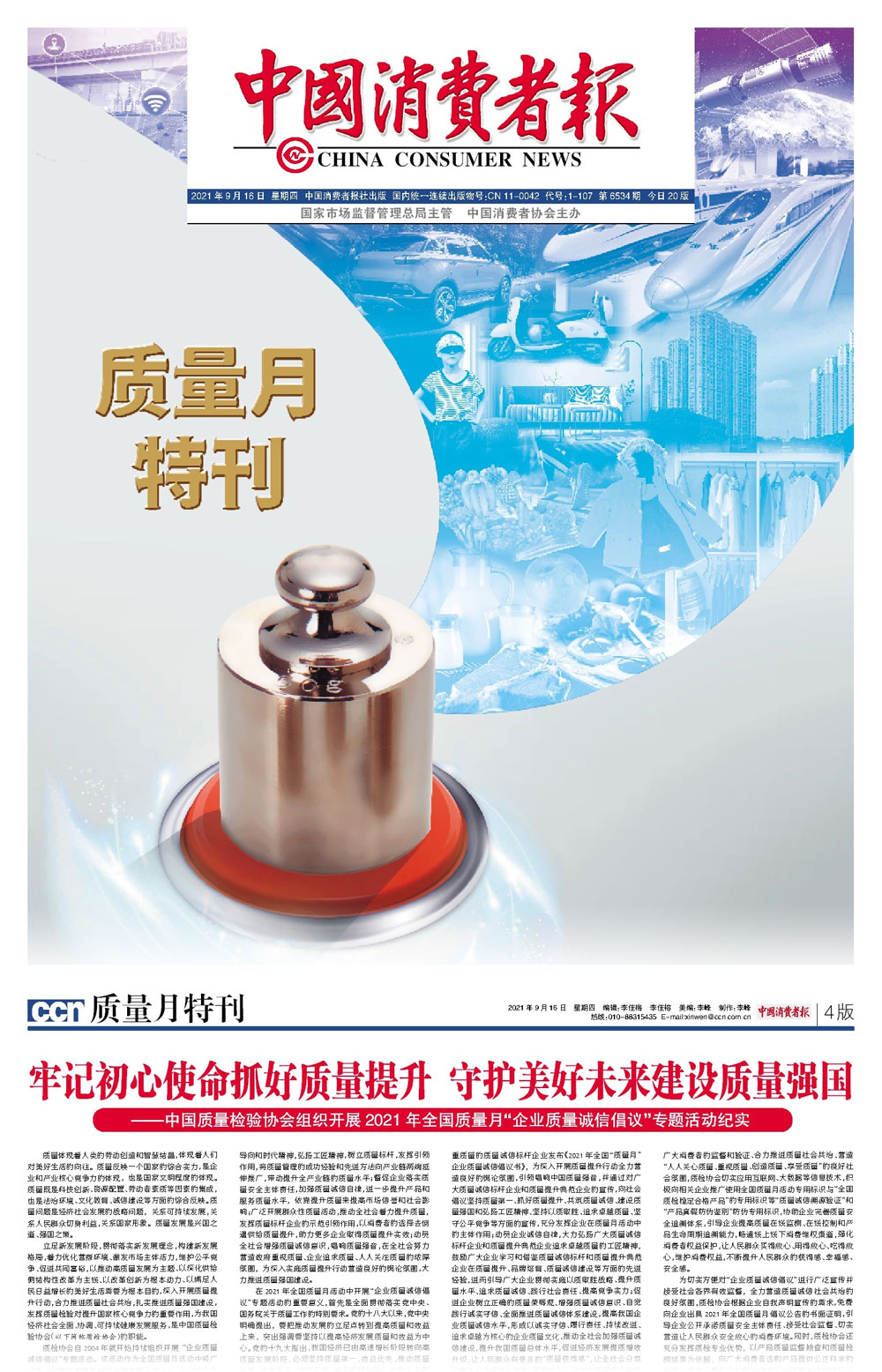 中國(guó)質(zhì)量報(bào):肩負(fù)使命抓好質(zhì)量提升匯聚力量助高質(zhì)量發(fā)展——中國(guó)質(zhì)量檢驗(yàn)協(xié)會(huì)組織開(kāi)展2021年全國(guó)“質(zhì)量月”企業(yè)質(zhì)量誠(chéng)信倡議專(zhuān)題活動(dòng)