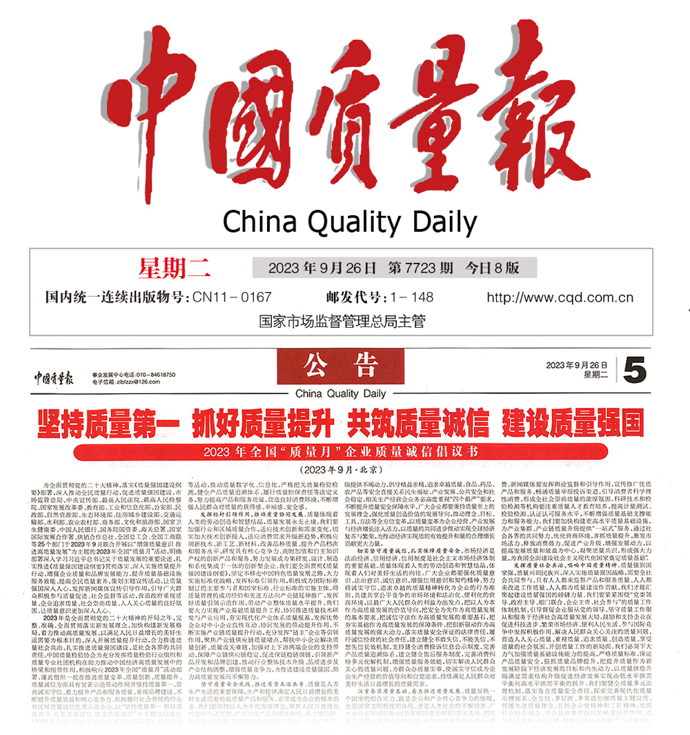 (編者按:本文采編于中國(guó)質(zhì)量報(bào)2023年9月26日刊第二版)